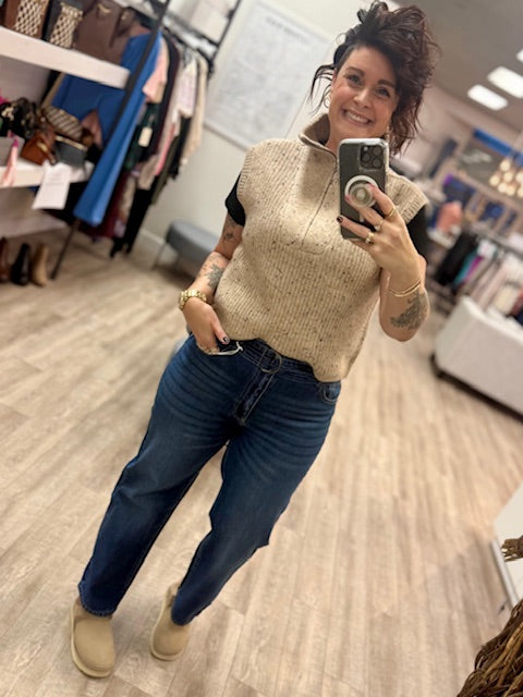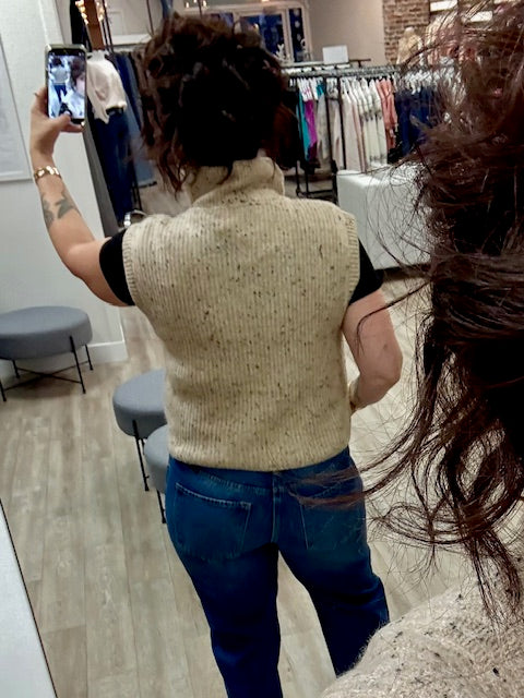 Enid Sleeveless 1/2 Zip Vest in Cream Fleck