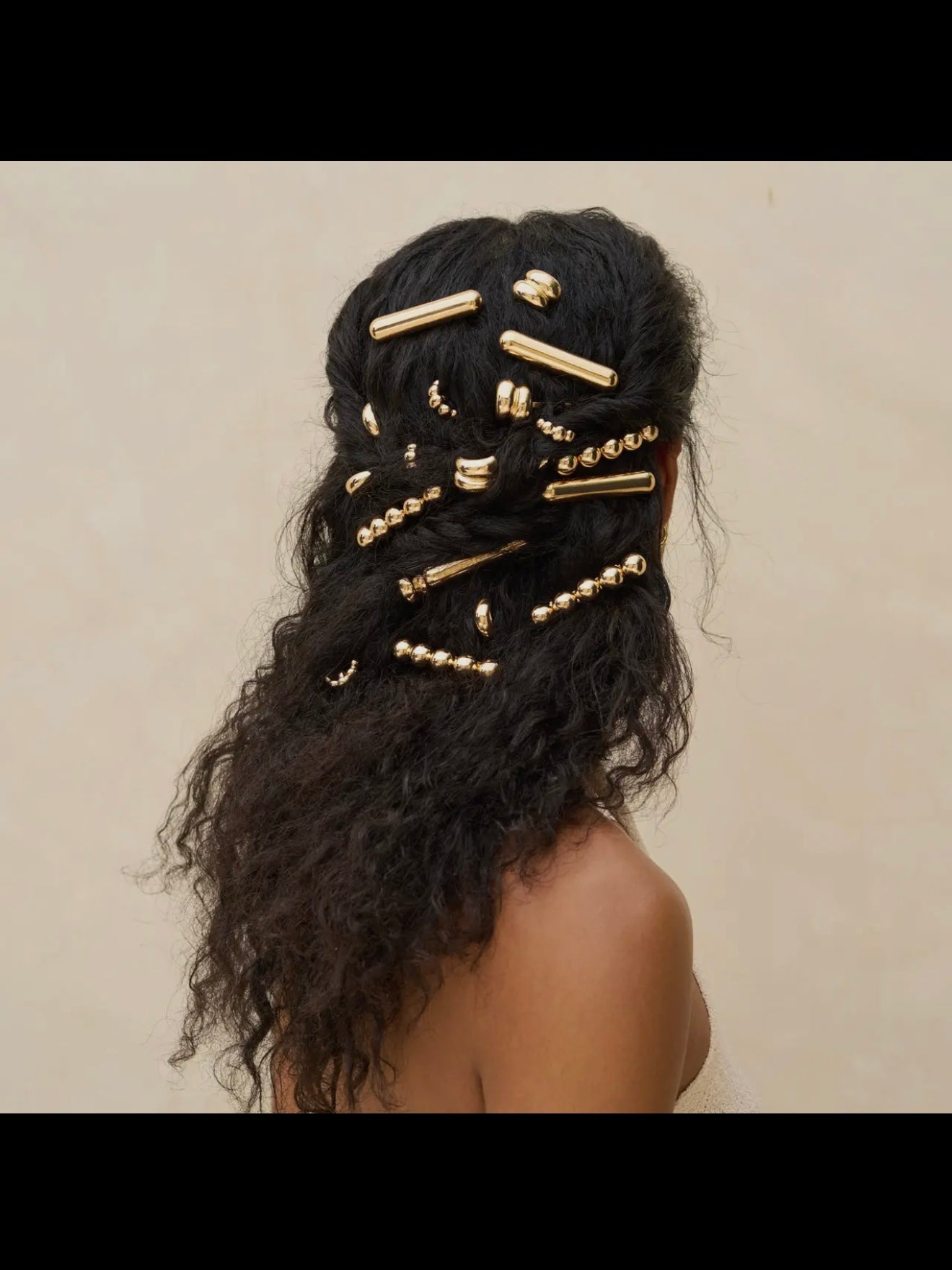 Shine in Every Style Turn everyday hair into something magical. The Kitsch Metal Cloud Pins in Gold are your dreamy go-to for effortless style. Lightweight and secure, they’re perfect for pinning back bangs, smoothing flyaways, or adding a glimmer of gold to any look. Wear one for subtle sparkle—or stack all three for a whimsical, cloud-inspired vibe. -Elevate your pinned-back hairstyle with these dreamy gold cloud bobby pins -Perfect for sweeping back bangs, taming flyaways, or adding a golden accent to any look -Wear solo for a hint of shine or stack them together for a whimsical, stylized touch WHY YOU’LL LOVE THIS -Lightweight metal holds hair securely without slipping -Adds a touch of shine and charm to any hairstyle -Perfect for mixing, matching, or stacking with other pins -Great for everyday wear, special occasions, or gifting