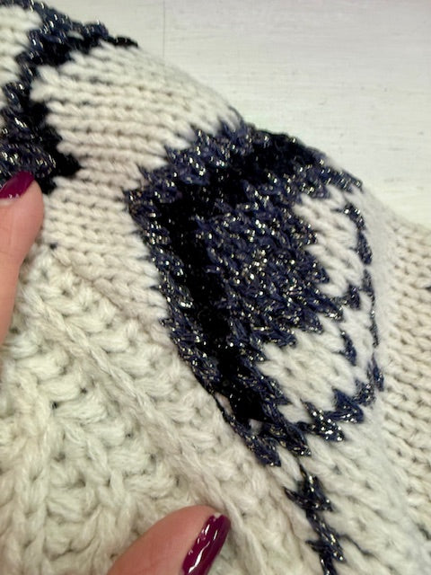 The creamy beige tone pairs beautifully with the bold, graphic patterning along the sleeves and back, giving it a modern rustic feel without being too loud. The ribbed body creates a flattering drape, while the deeper V-neckline makes it perfect for layering over fitted tees, turtlenecks, or simple tanks. Buttoned up or worn open, this cardigan adds texture, warmth, and a little bit of personality to any outfit. It’s the perfect blend of comfort and trend-forward style—ideal for fall days, winter weekends, or anytime you want that soft, wrapped-up feeling without losing your edge.